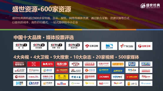 盛世經(jīng)典擁有600余家媒體資源,涵蓋央視、衛(wèi)視、主流雜志、視頻平臺(tái)、搜索引擎等,能通過聚合采購與資源互換,以高性價(jià)比模式助力企業(yè)登上權(quán)威媒體舞臺(tái),快速樹立“中國十大品牌”“行業(yè)標(biāo)桿”等高端形象。